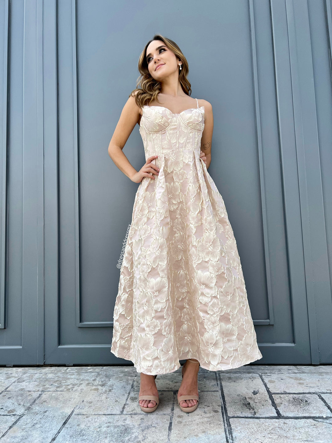 Vestido crema midi flores