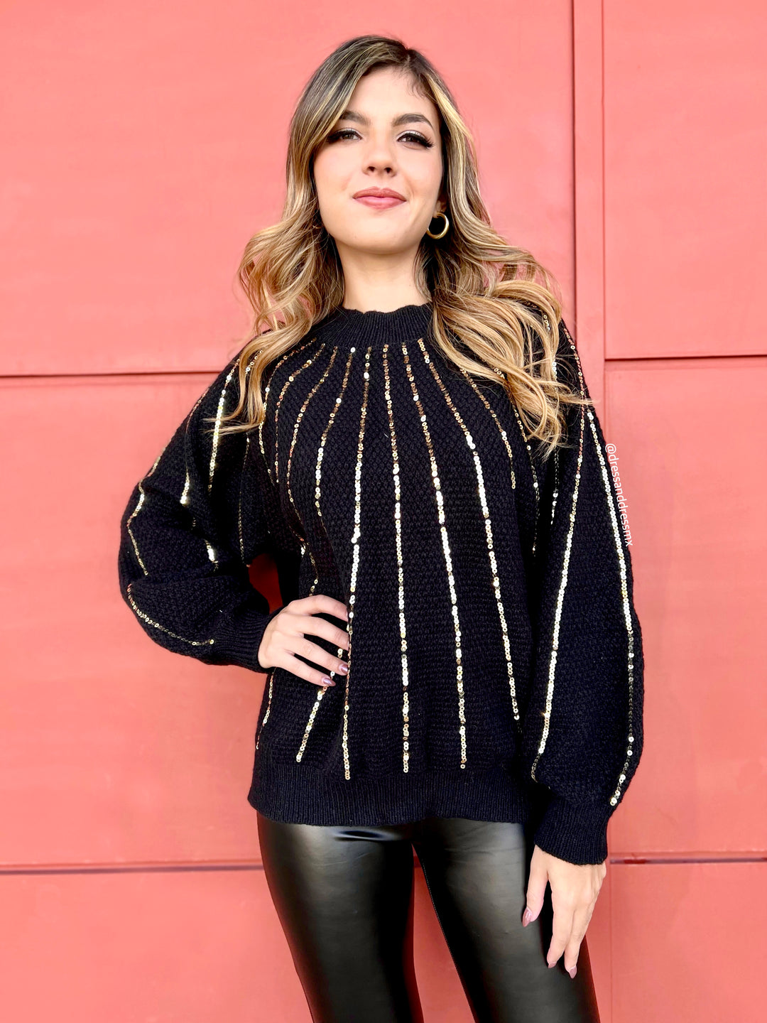 Suéter negro lentejuelas doradas