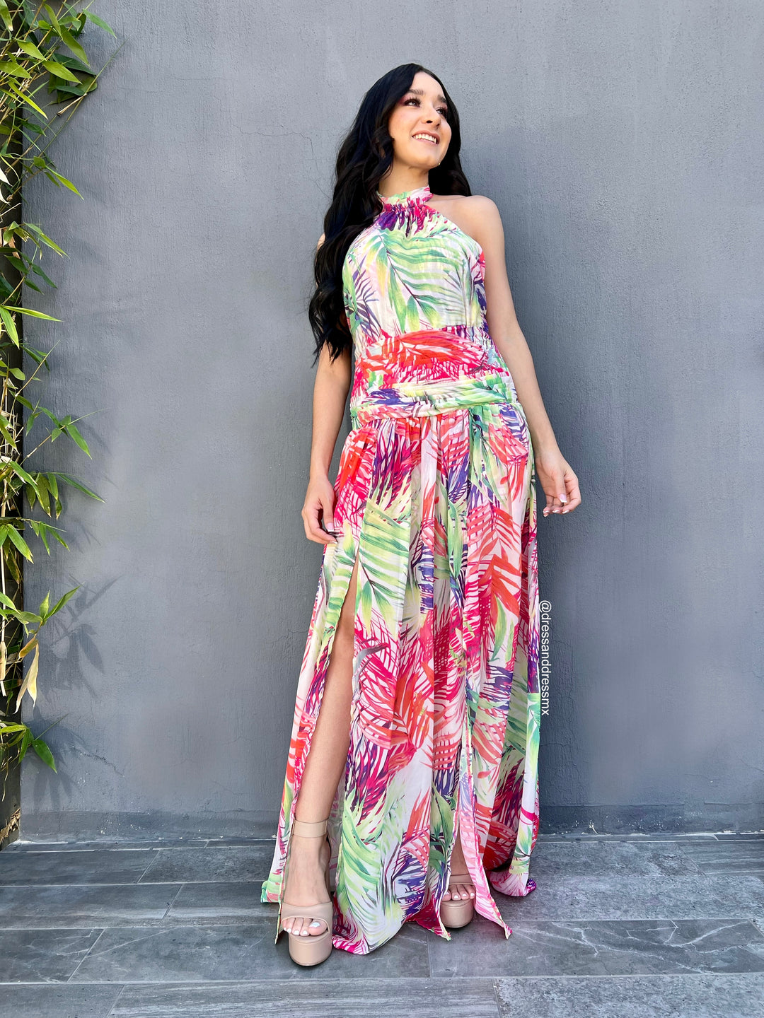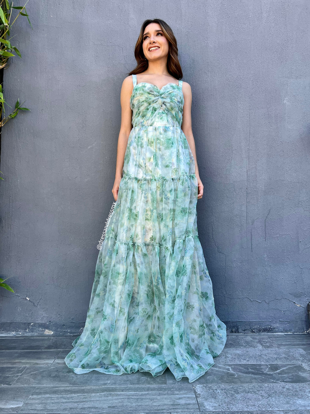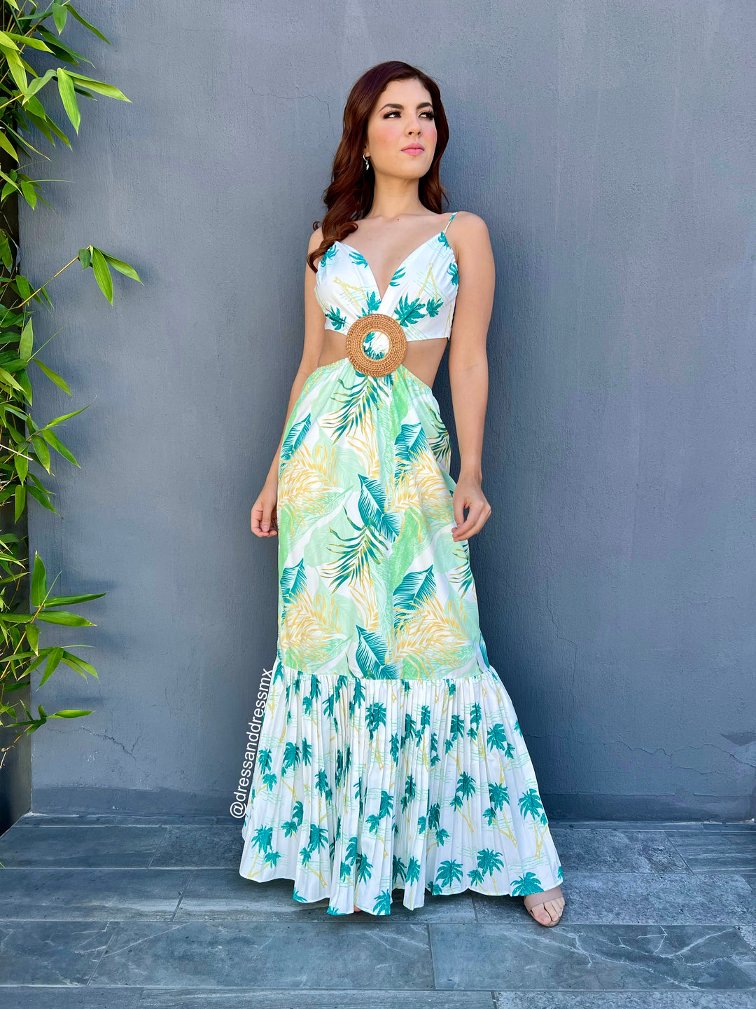 Maxivestido tableado hojas