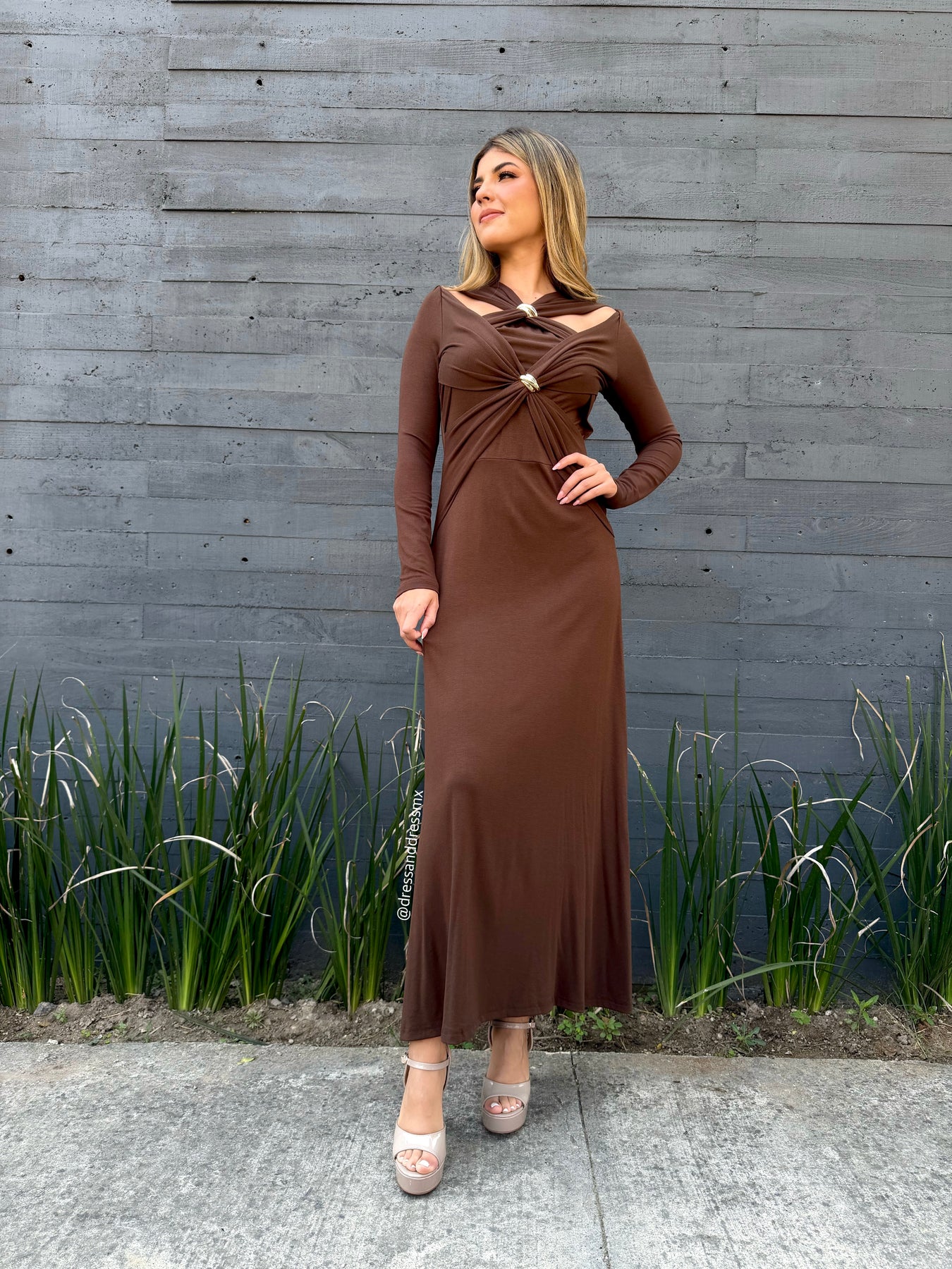 Vestido café midi detalle argollas