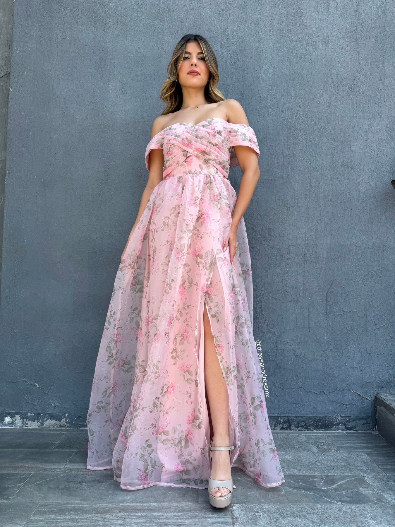 Vestido flores offshoulder
