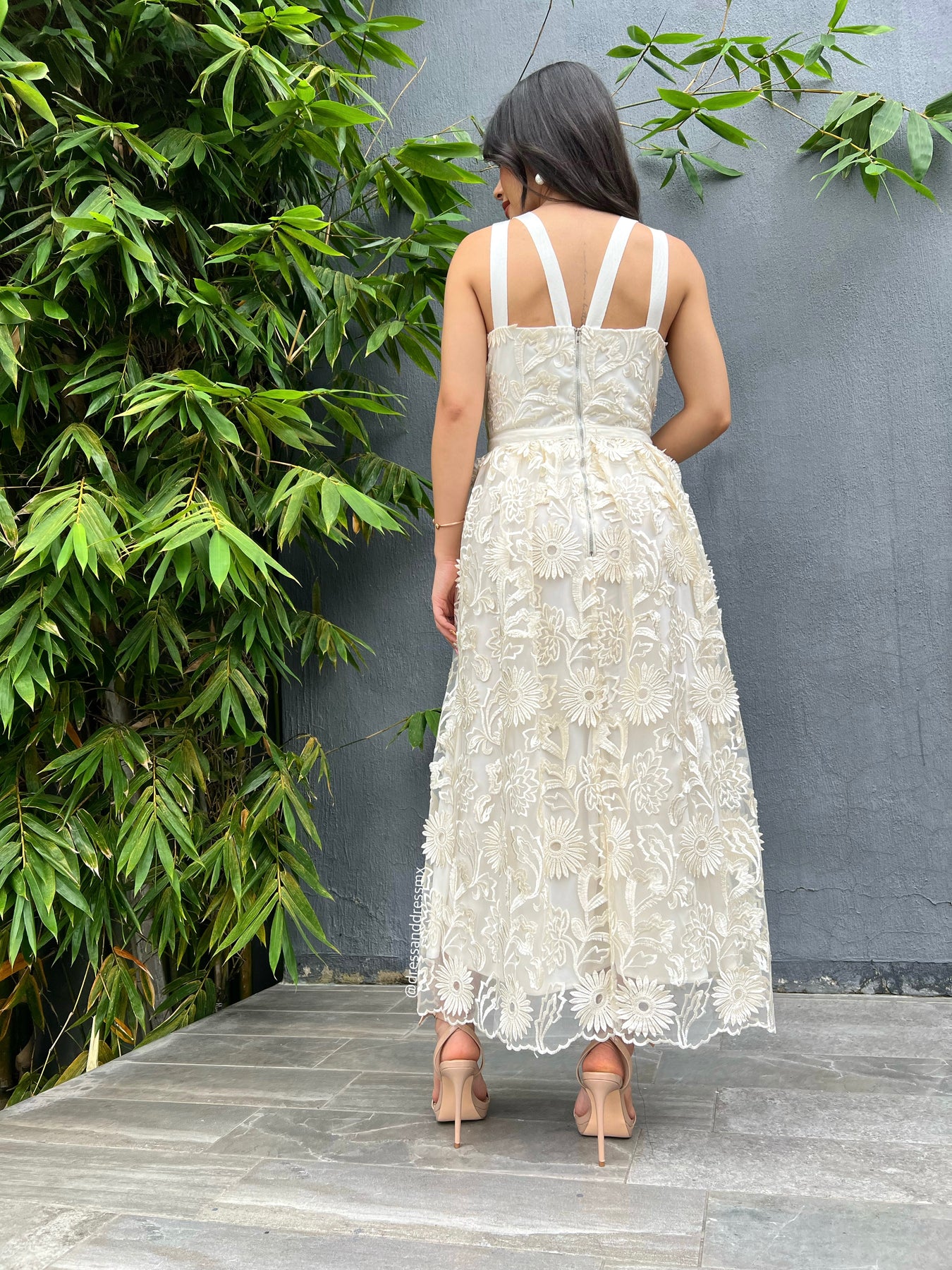 Vestido crema bordado midi
