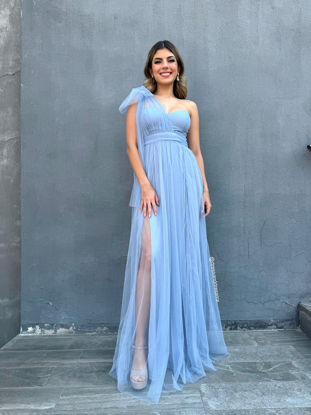 Vestido un hombro azulito