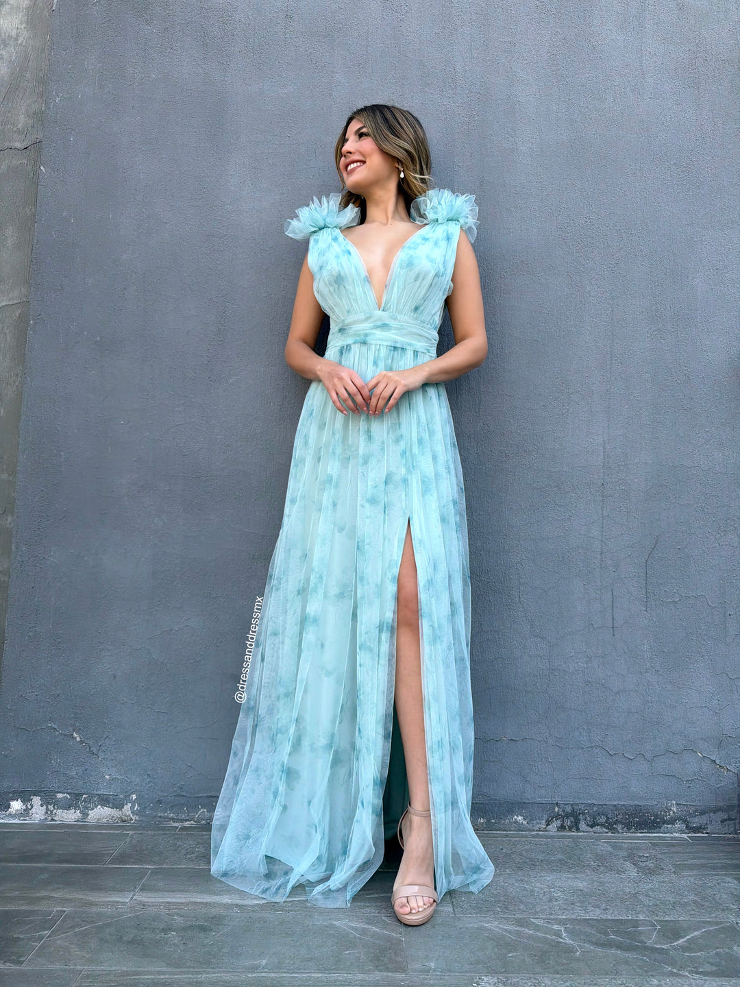Vestido menta escote V