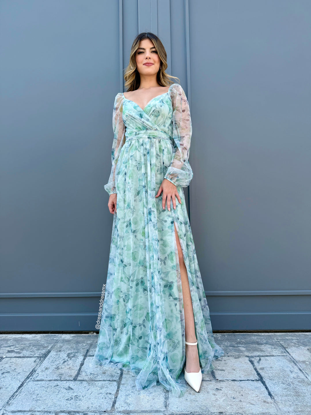 Maxivestido flores verdes