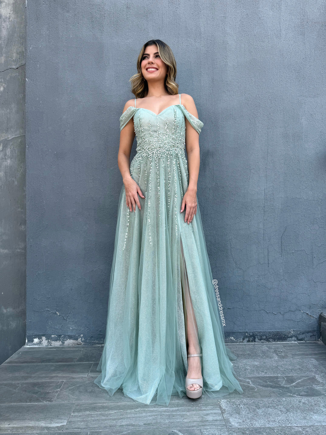 Vestido verde brillos