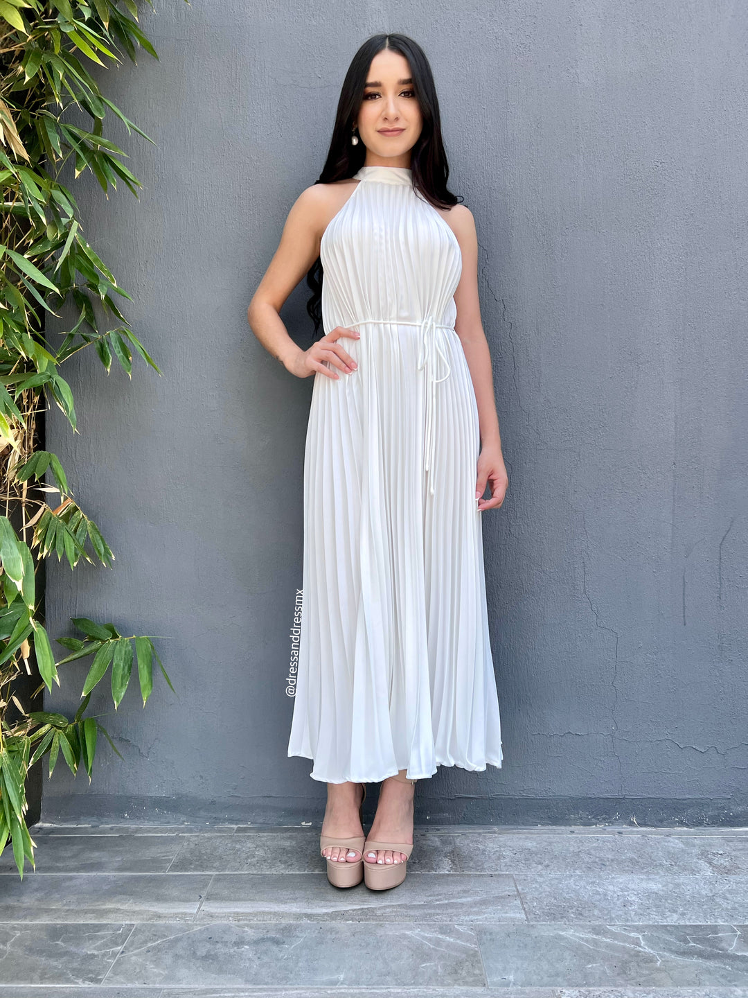 Vestido tableado blanco midi