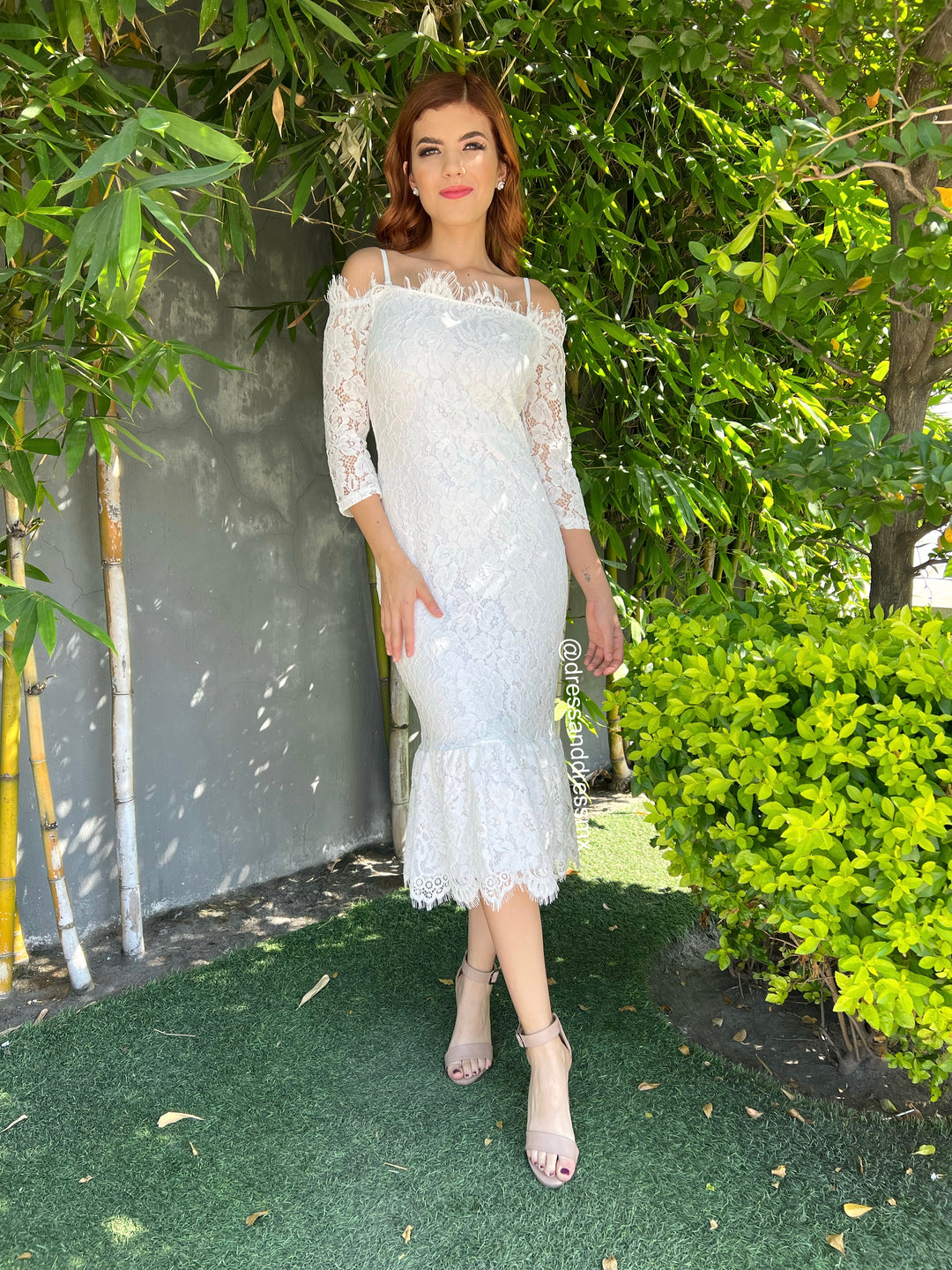 Vestido offshoulder encaje midi